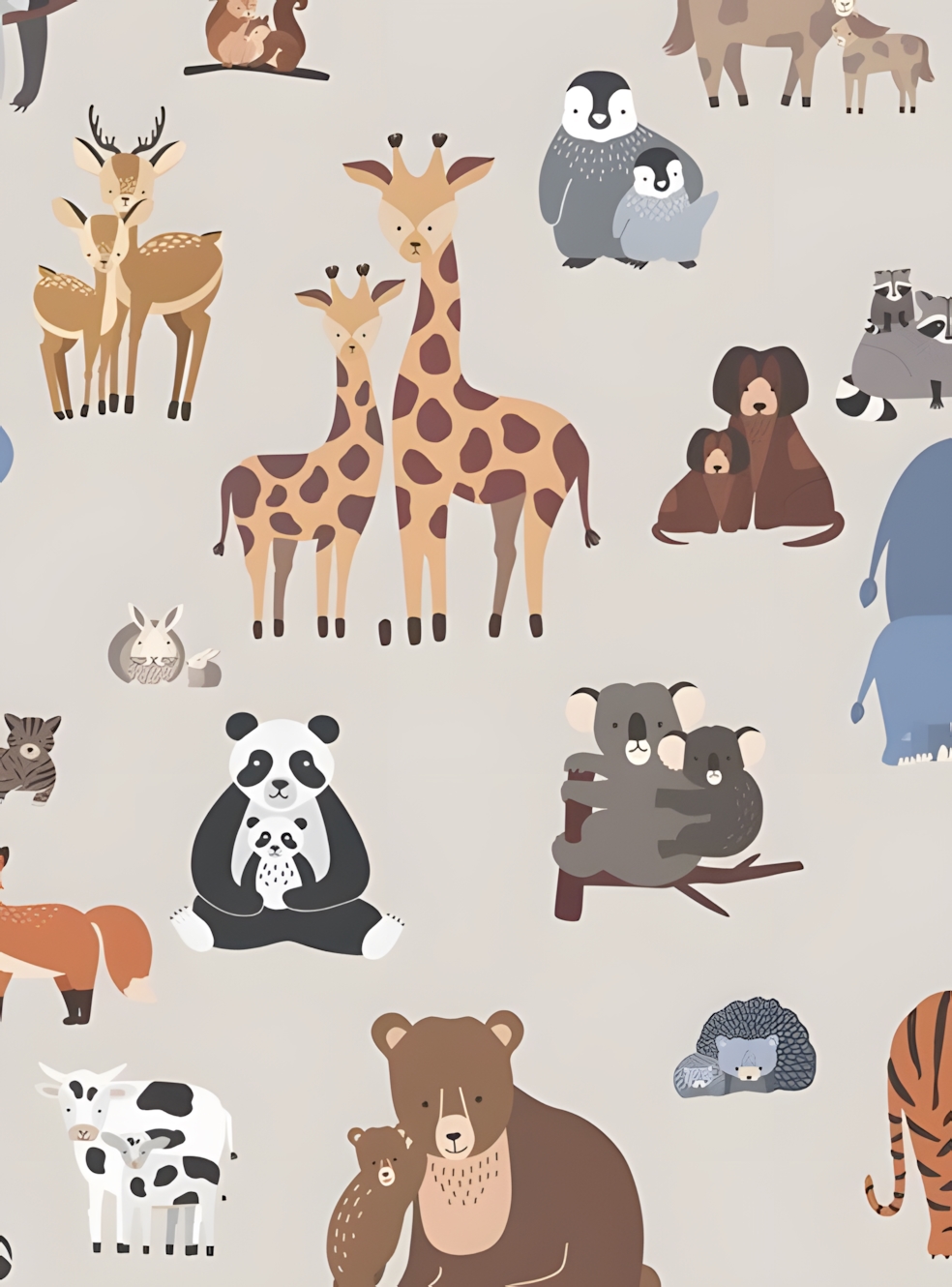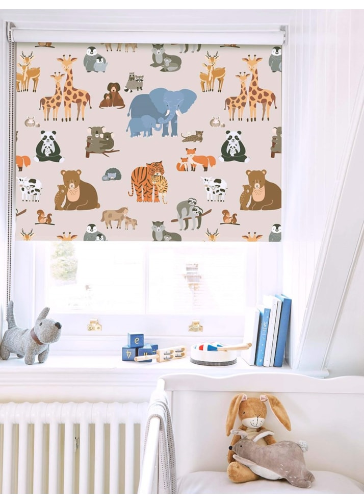 A charming taupe blind scattered with a menagerie of animals and their sweet babies. Perfect for gender neutral rooms, this lovely design also works wonderfully in a play room.
