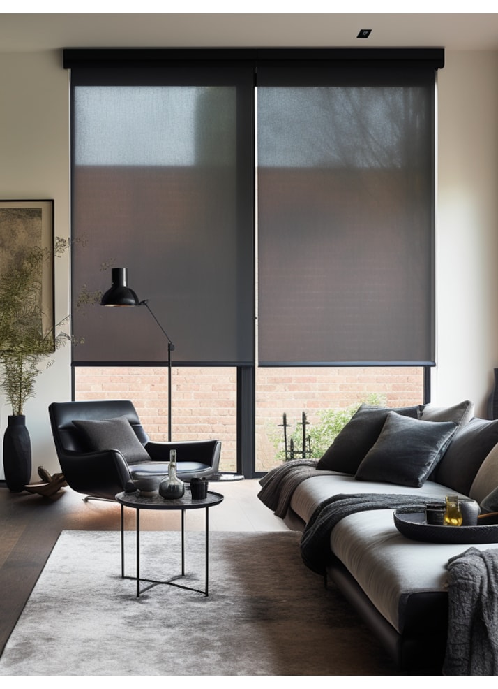 An anthracite sunscreen roller blind epitomizes sleek, modern sophistication. Its deep, charcoal hue exudes a sense of urban elegance, perfect for contemporary interiors seeking a touch of understated luxury. Crafted with precision, the sunscreen fabric offers optimal light management, filtering sunlight to create a comfortable ambiance while maintaining privacy. The smooth texture enhances its minimalist appeal, seamlessly blending into any space with effortless style.