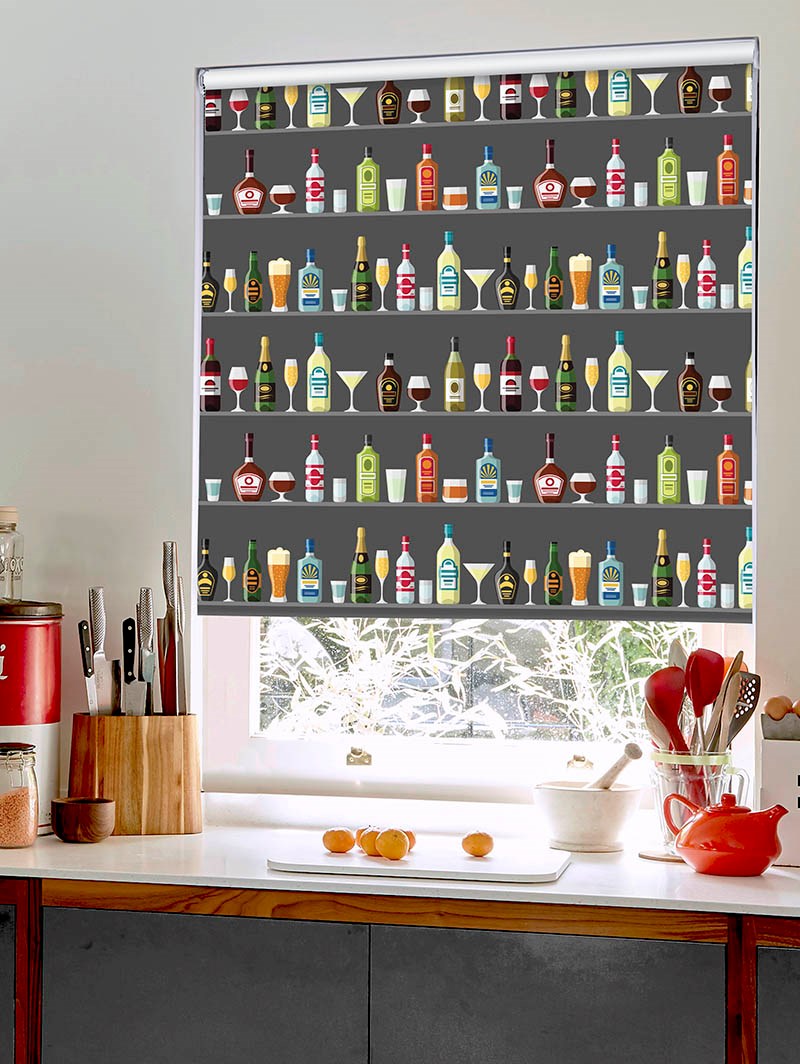 Show off your inner mixologist with this modern bottle and glass design. The bold graphics against an on trend deep grey background looks truly stunning in a modern kitchen and is sure to start a conversation or two with your guests, but is also a great choice for a bar or pub.