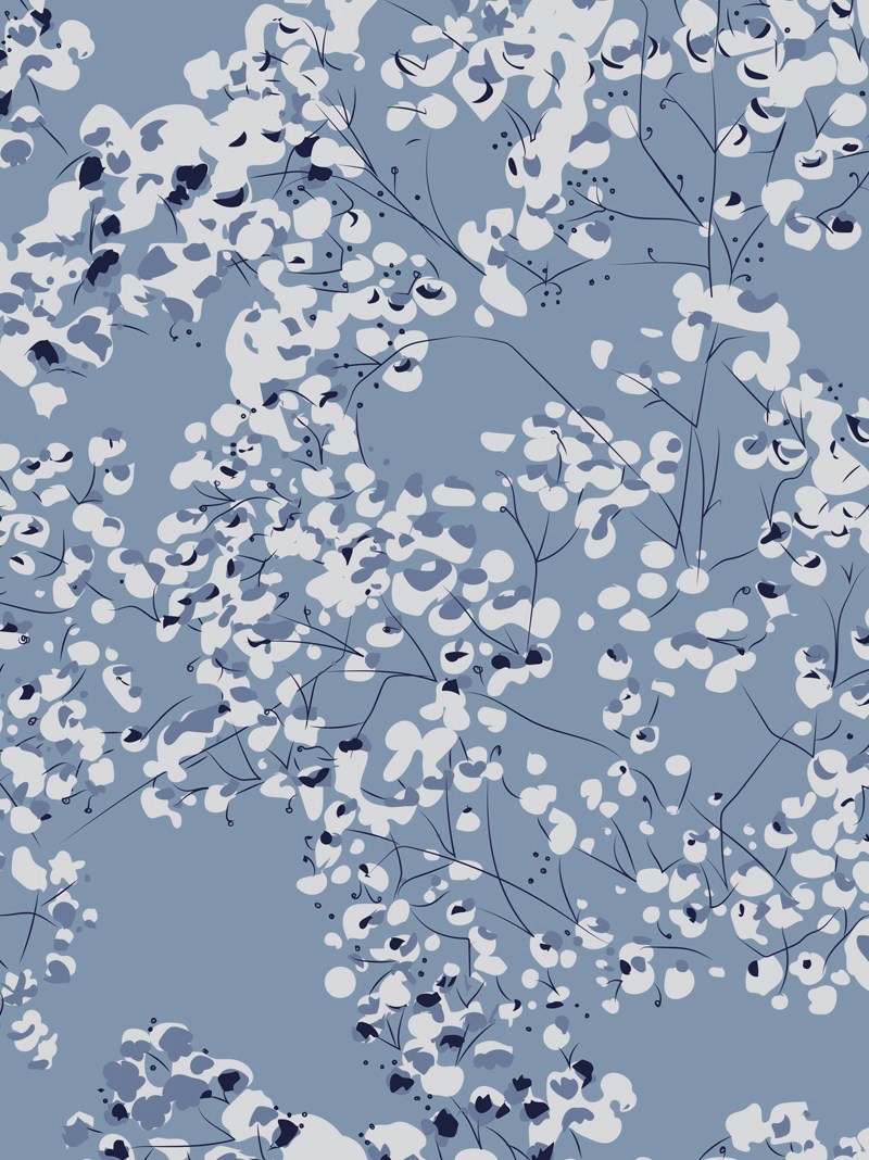 This delicate floral design in shades of beautiful dusky blue is influenced by the flower gypsophila or 'Baby's Breath' that Lorna used in the decor at her wedding. You'll often see this charming bloom in bouquets and table arrangements, a lovely reminder of celebrations and special days.