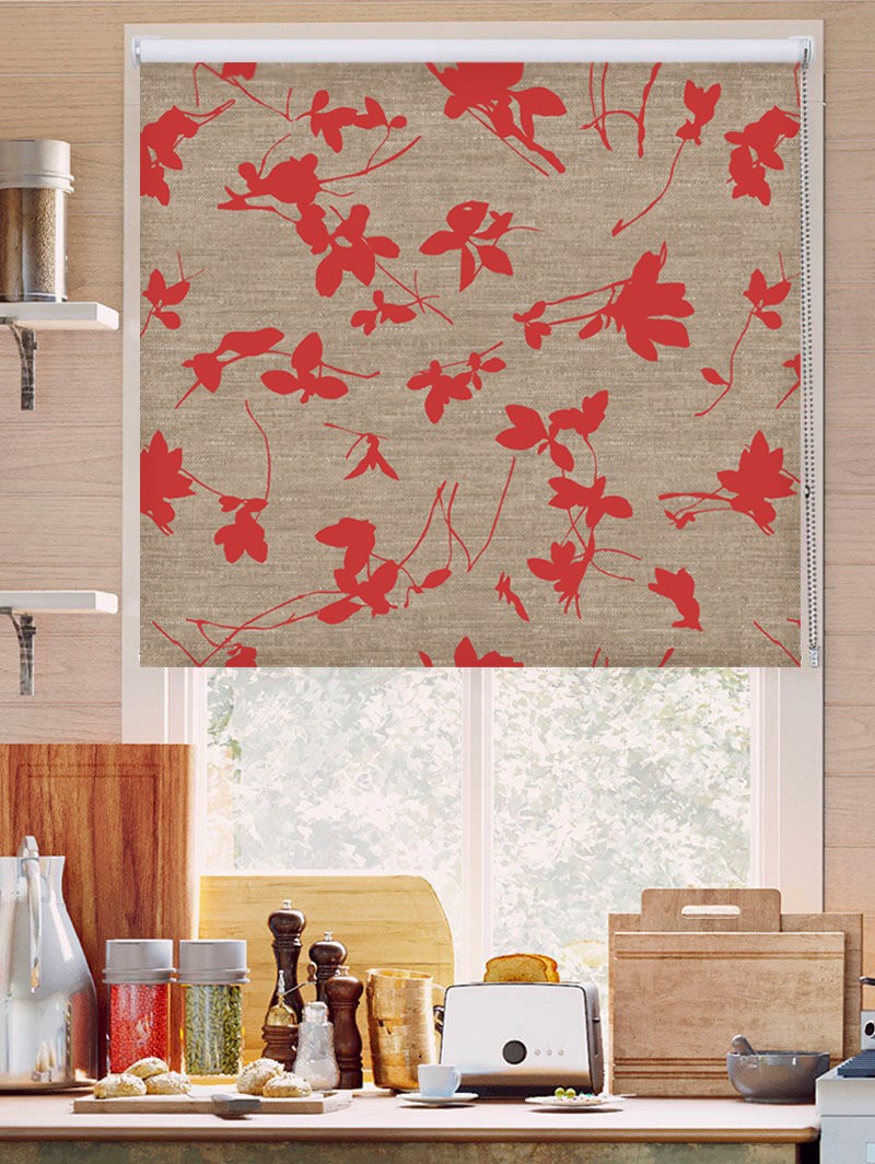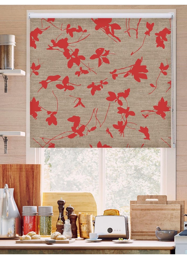 A glamorous design in a decadent combinations of crimson and golden beige, our Arya Scarlet Floral Roller Blind is an easy way to give your room an eye catching design element. The red silhouettes and textured look are reminiscent of luxurious oriental fabrics making it ideal for cosy living spaces.