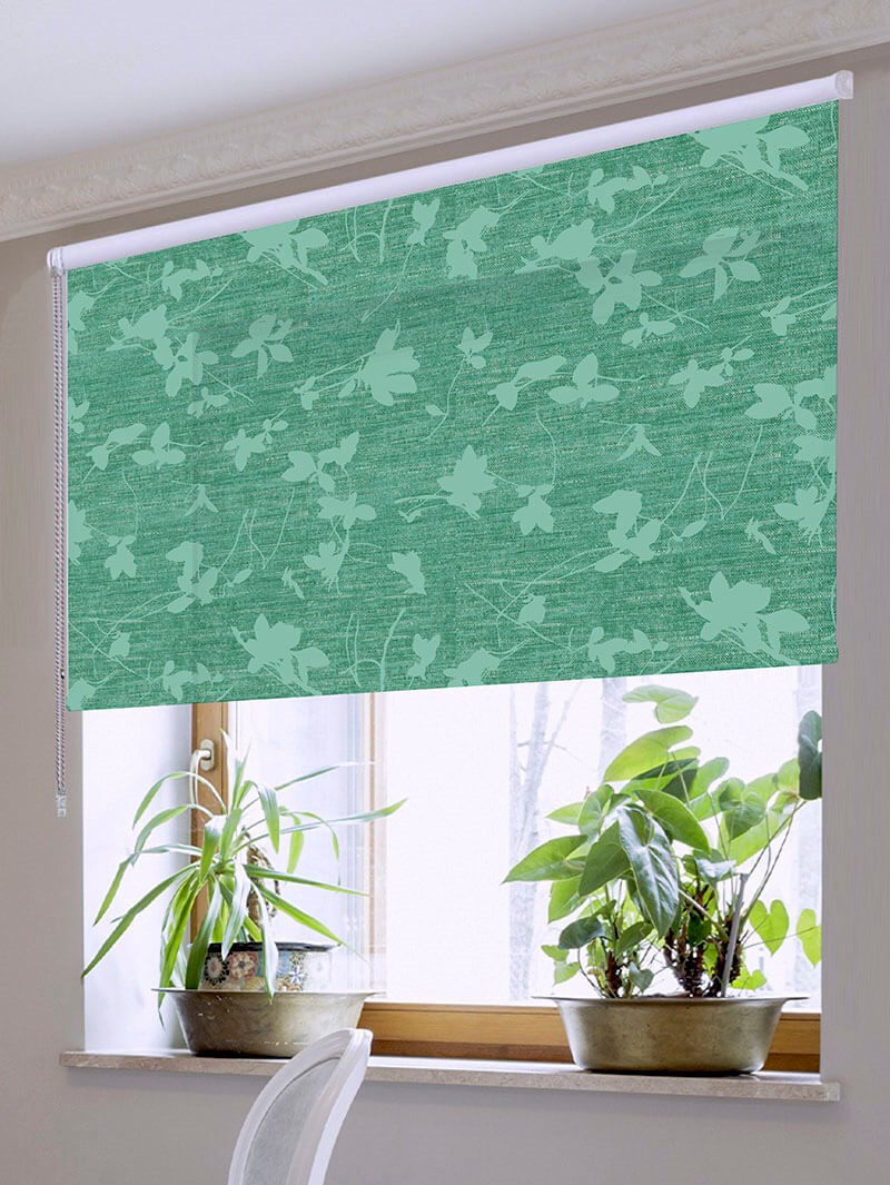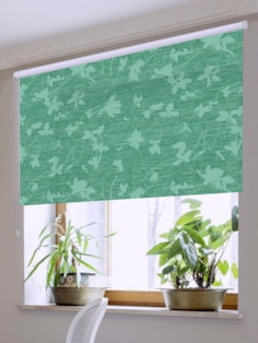 Serene shades of teal green give this delicate yet eye catching design a beautiful calming edge that works perfectly in living spaces or practical rooms alike. With a textured look and silhouetted foliage this Arya Teal Floral Roller Blind offers a peaceful yet high end feel.