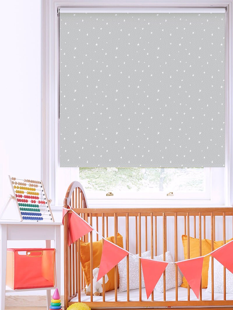 This lovely grey blind is scattered with stars from the night sky, making it the perfect addition to a children's bedroom, playroom or nursery. The versatility of the colours in this blind offers itself to countless room decor and colour schemes.