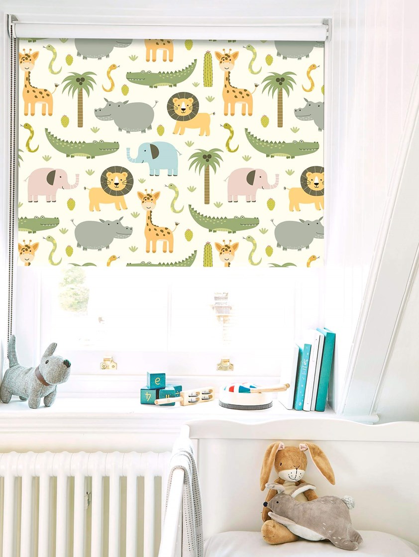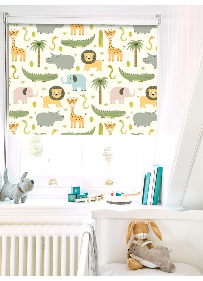 Bring the safari to your child's bedroom or play room with this gorgeous design! A menagery of animals smile out from a sandy background dotted with cactai and palm trees.