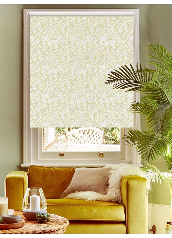 Bamboo Shadows Sage on Linen Blackout Roller Blind