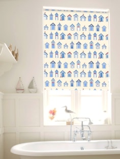 Pretty beach huts on a sandy beach - is there a more typical English summer holiday scene? Bring some nostalgic seaside charm to your bathroom with this lovely beach hut print window blind.