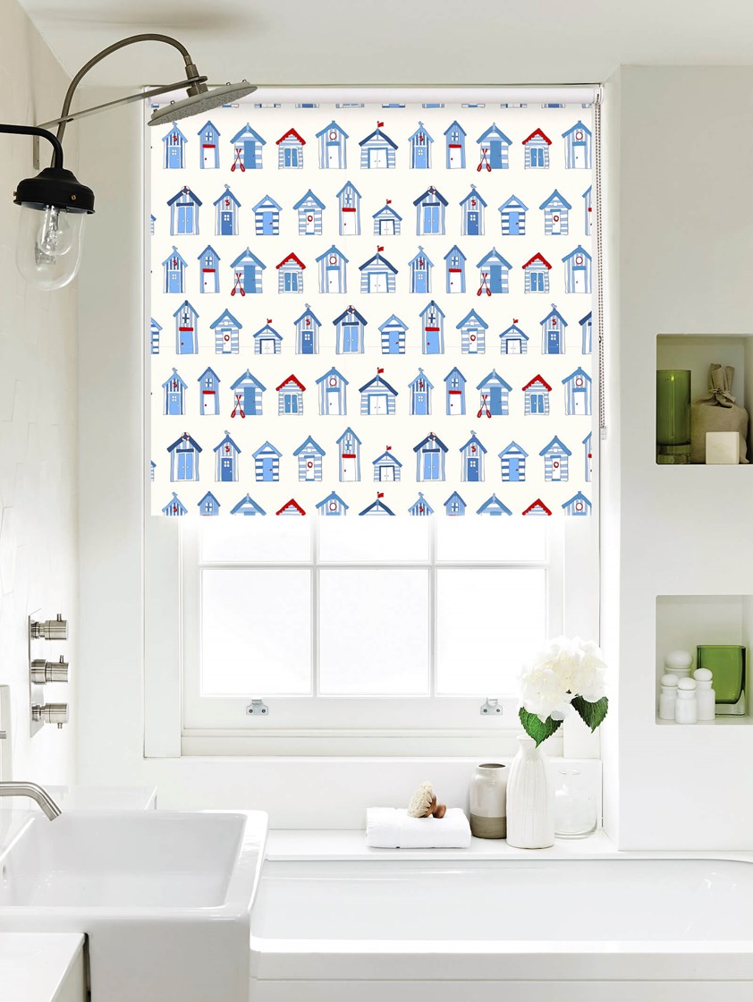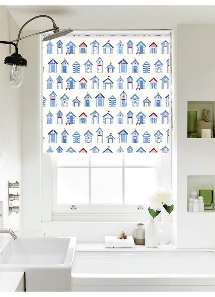 Pretty beach huts on a sandy beach - is there a more typical English summer holiday scene? Bring some nostalgic seaside charm to your bathroom with this lovely beach hut print window blind.