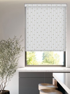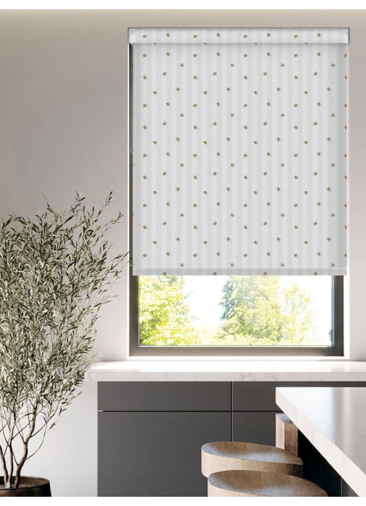 Playful Bumble bees buzz around over a subtly striped background in gorgeous natural tones. ‘Bee Keeper Stripe’ features a printed fabric texture background adding a cosy touch to your window, perfect for contemporary or traditional spaces.