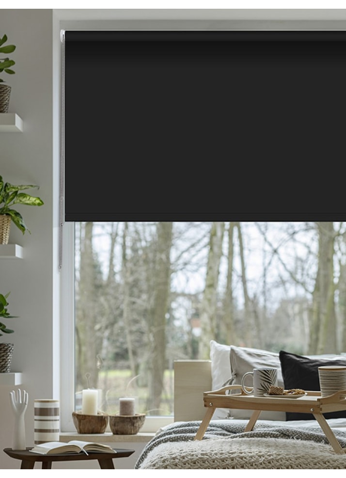 If you would like to give an authoritative emphasis to a bedroom or living room, this Black blackout blind does just that. It offers a dramatic contrast to a room with a lot of colour, or a sophisticated appearance to a monochrome colour scheme.