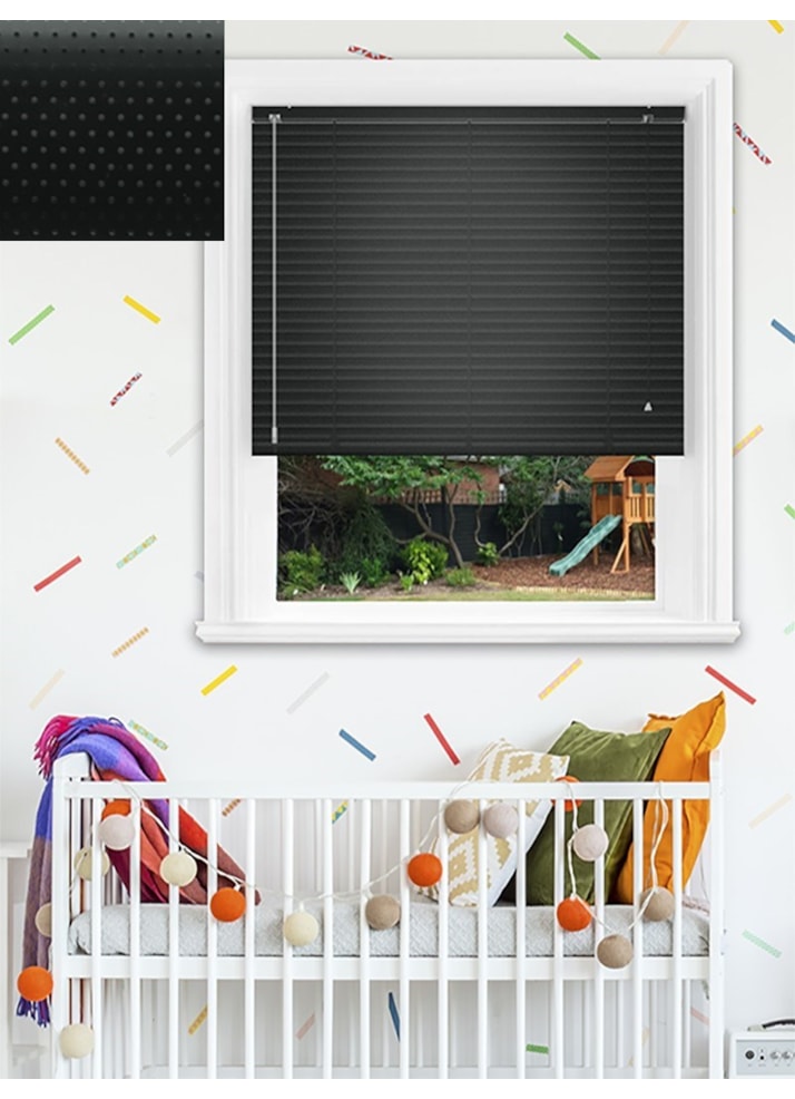 A sophisticated blind with a soft appearance, our Aluminium Perforated Black Venetian Blind is perfect for an office or living room, as it eliminates light glare for optimal viewing of computer or television screens. The versatility of this blind means it can make a statement piece in light and dark decorated rooms alike.
