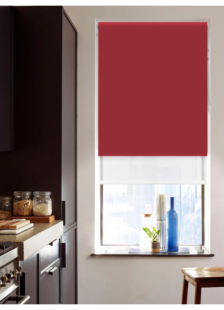 Blackout Garnet Red and Sheer White Double Roller Blind