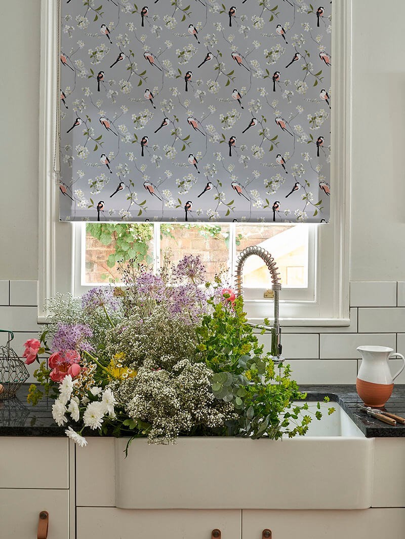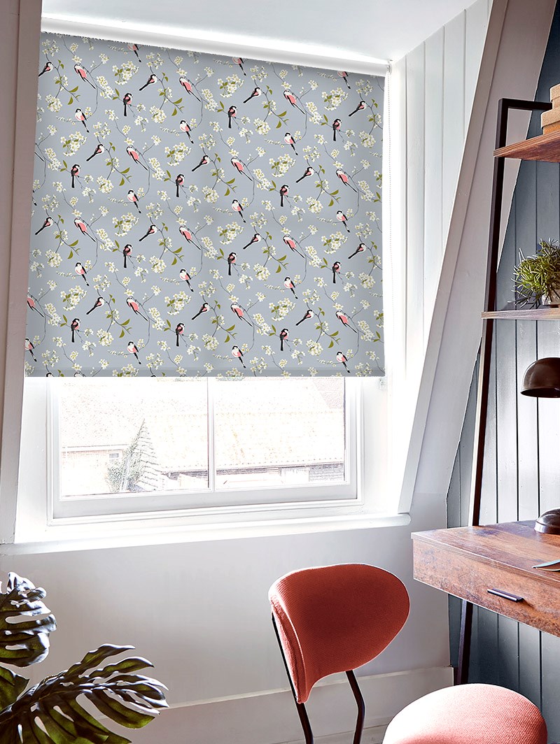 Blossom & Bird Grey Roller Blind by Lorna Syson