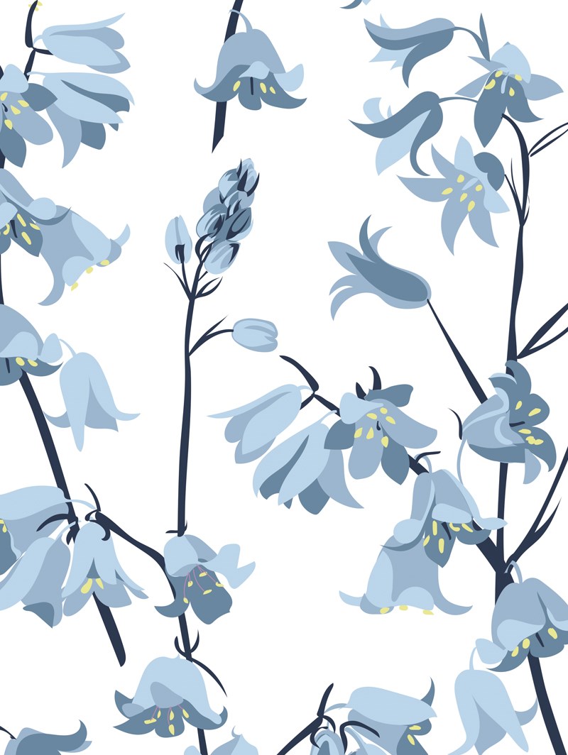 A highly sought after flower that draws crowds when it blooms through the woodland in swathes of blue, this design is full of charm and brings a serene feel to any space. The airy bright colour palette is easy to work into many interiors and offers a pretty desigvn element that doesn't overtake a space.