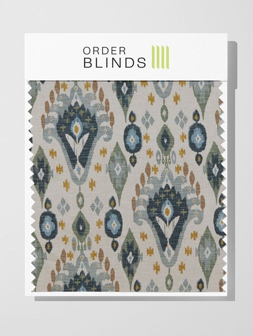 Embrace the Boho spirit with our Boho Glacier Roman Blind, featuring a mesmerizing pattern in cool blues, adorned with accents of mustard yellows and pale greens. This window treatment adds a touch of free-spirited style and a serene, inviting ambiance to your decor.