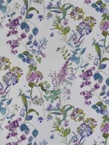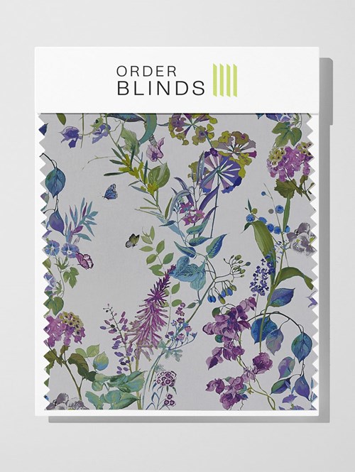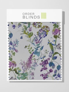 Enhance your decor with the Bougainvillea Wisteria Roman Blind, showcasing a patterned design inspired by flowering purple wisteria that adds a touch of natural elegance and charm to your living space. This window treatment seamlessly marries style and privacy, creating a soothing and inviting ambiance with its captivating floral pattern.