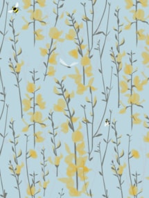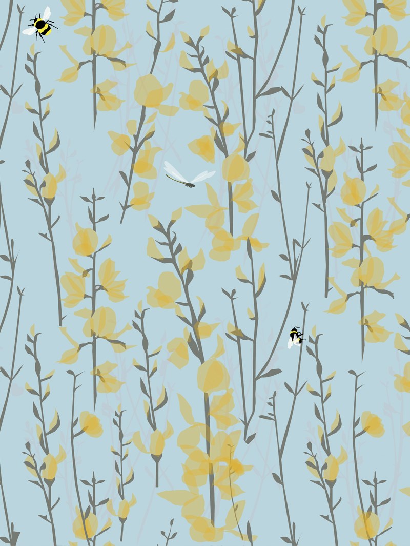 Busy bees collecting nectar, buzzing around their favourite blooms and flying through bright blue skies - the essence of British Summertime. Lorna was inspired to create this uplifting and relaxing design at her honeymoon hideaway in rural Leicestershire.