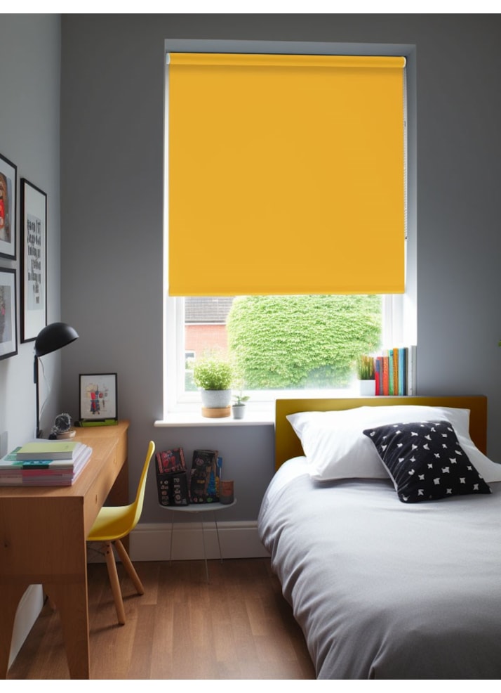 This bold yellow blackout roller blind is a vibrant and practical addition to any space. Crafted from a durable, light-blocking material, this blind not only adds a cheerful burst of color but also provides exceptional light control and privacy. Its vivid yellow hue instantly enlivens the room, infusing it with warmth and energy.