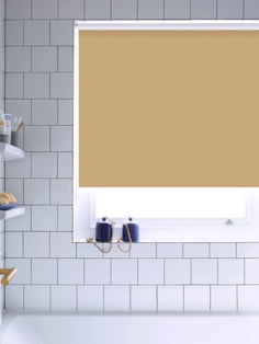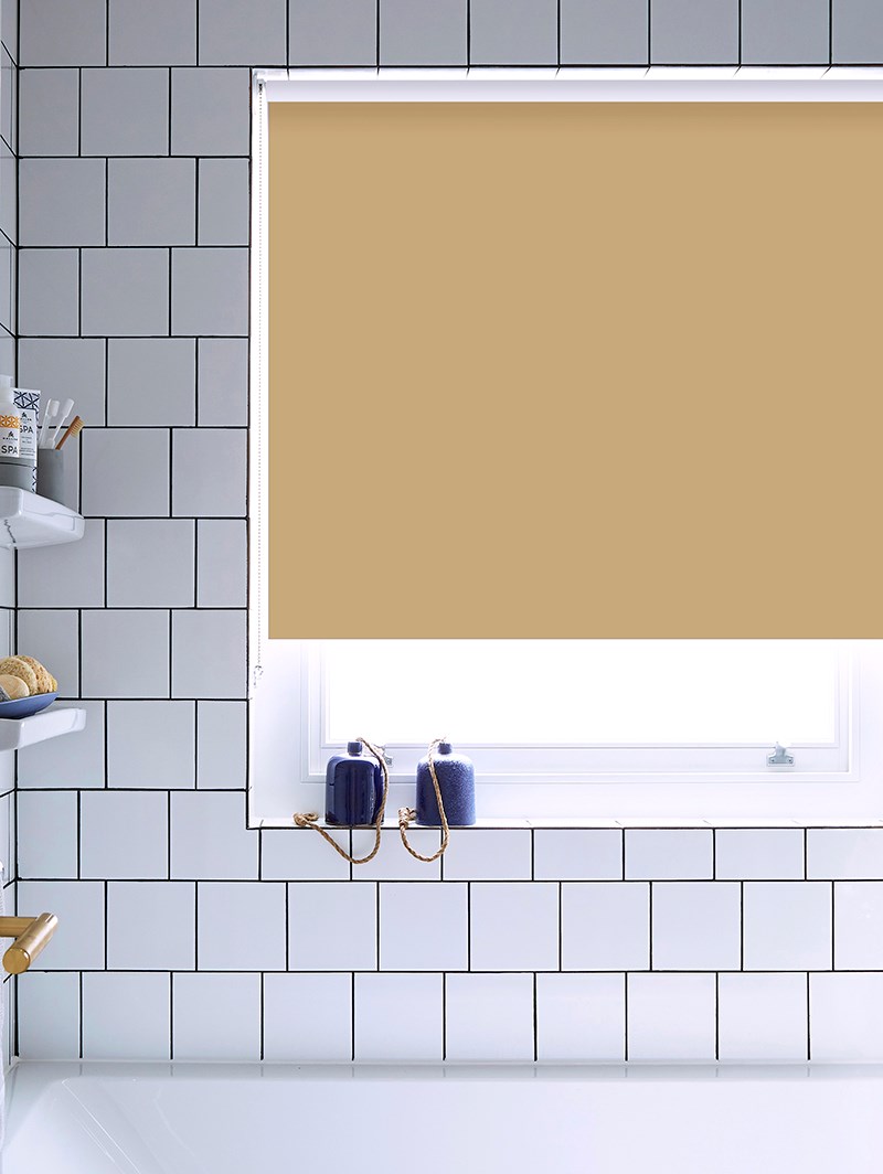 Perhaps not an obvious choice for a bathroom, this caramel coloured blind is a perfect choice if you're looking to add warmth to the room. It's also a great alternative to a blue blind when creating a coastal theme so as not to overwhelm the space with blue.