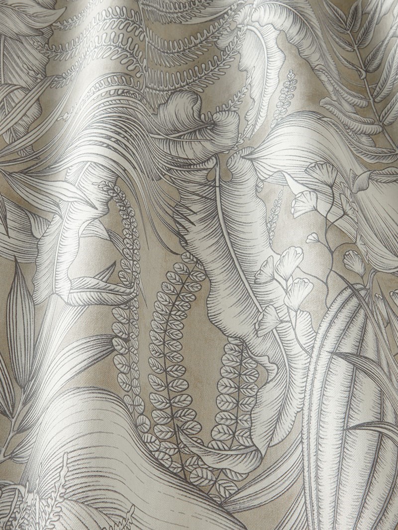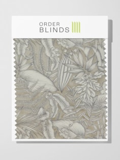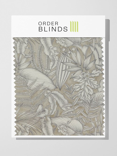 Elevate your decor with the Caicos Hessian Roman Blind, inspired by tropical foliage. Its timeless soft greige background with textured modern grey linework creates a sophisticated tropical leaf pattern, adding a touch of natural beauty and contemporary elegance to any room.