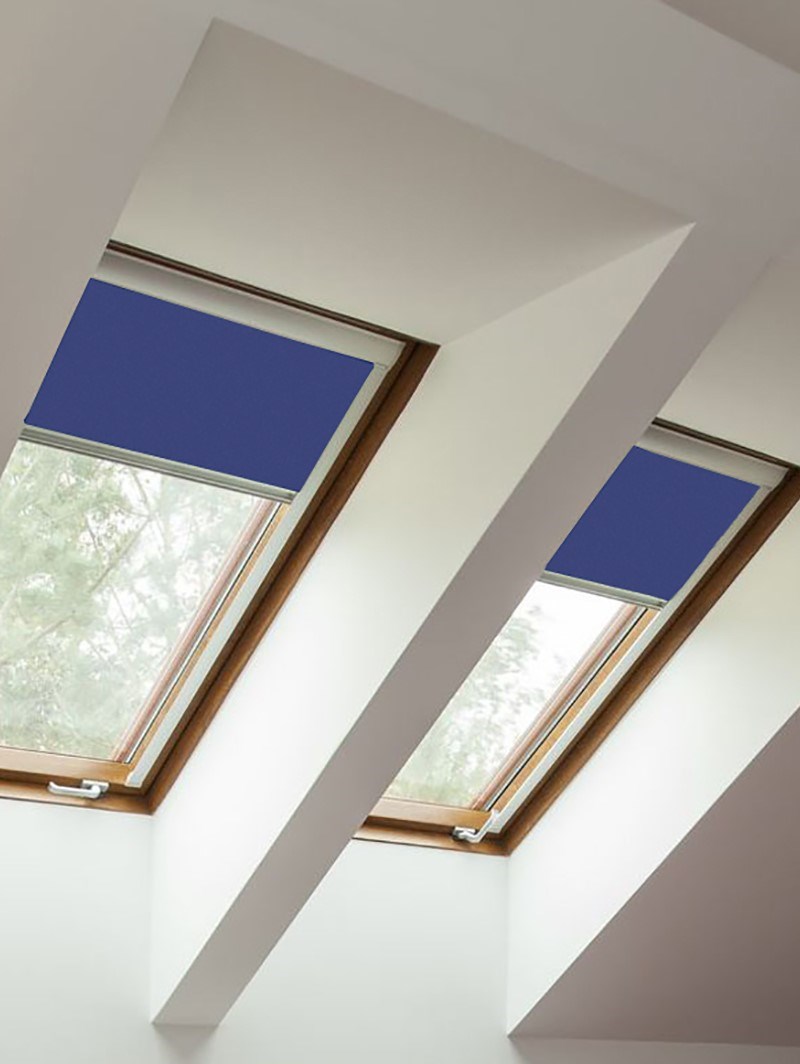 This playful & colourful Blue skylight blind is available to fit all of the most popular Velux roof window sizes. The mid blue colour of this blind's fabric sits between a sky blue & primary blue making it a wonderful choice for a child's bedroom or playroom.