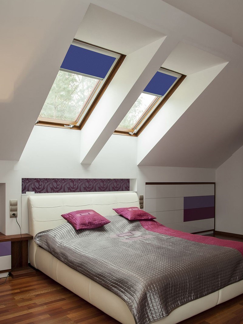 This playful & colourful Blue skylight blind is available to fit all of the most popular Velux roof window sizes. The mid blue colour of this blind's fabric sits between a sky blue & primary blue making it a wonderful choice for a child's bedroom or playroom.