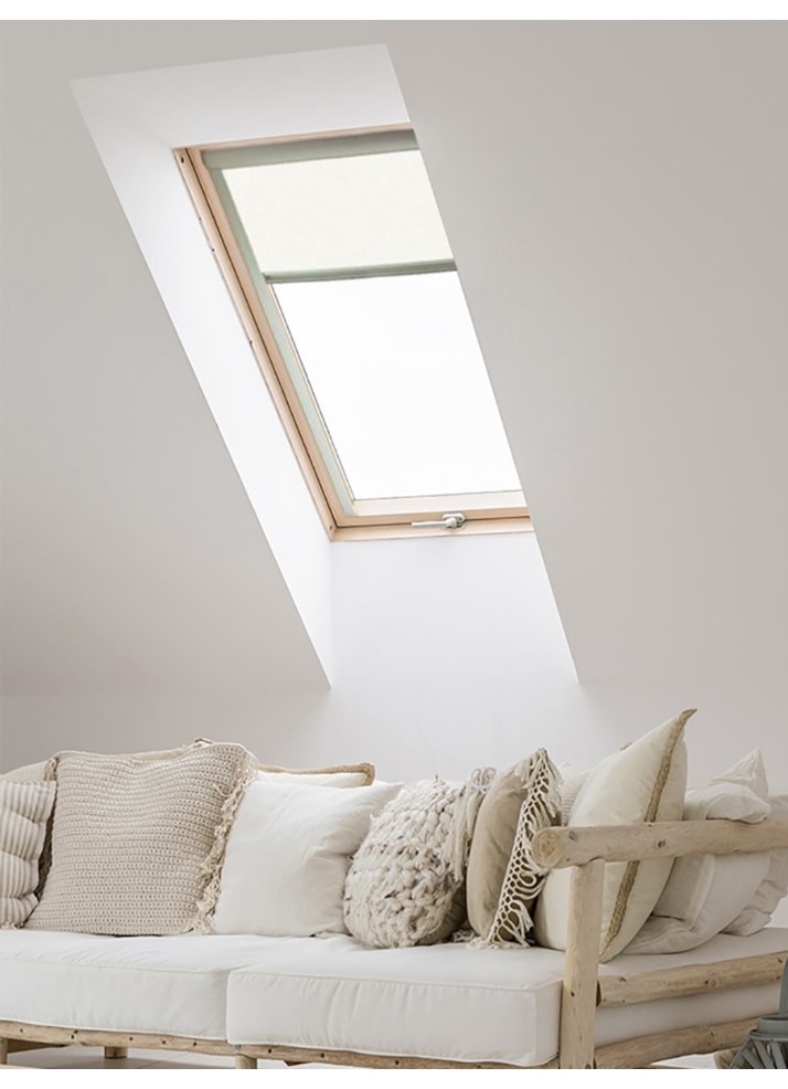 Although it's light & bright, this White skylight blind for Velux windows provides complete blackout. Don't be fooled by the colour, this material is just as effective as blacking out the light as a black fabric thanks to its 3 pass blackout fabric. Add this to a white walled room for a magnificent modern look.