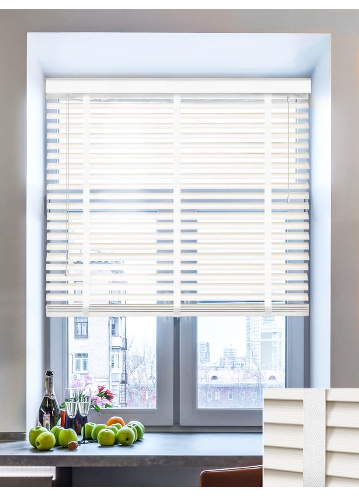 Clean White Wood Grain Faux Wood Venetian Blind With Tapes