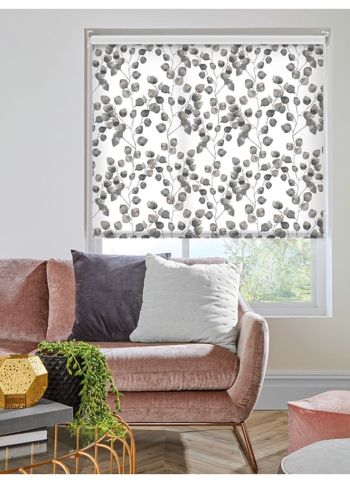 Climbers Grey Floral Leaf Roller Blind