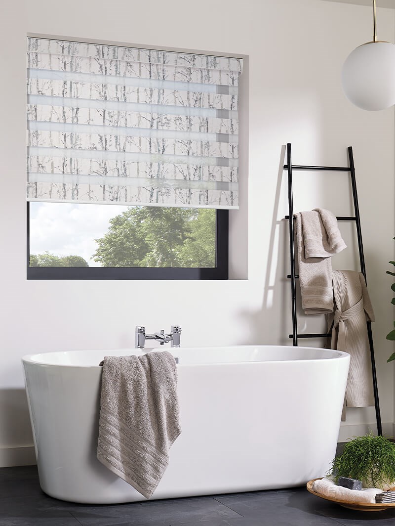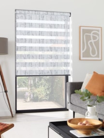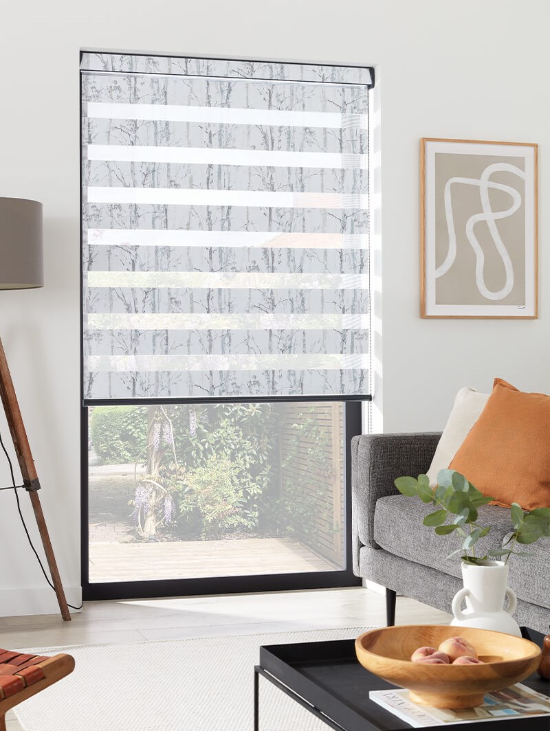 An attractive and innovative solution for many windows, our clever Day and Night blind system works using a looped piece of fabric so that when you raise or lower the blind you can make the alternating sheer and opaque stripes either align or disalign in varying amounts for amazing light control.