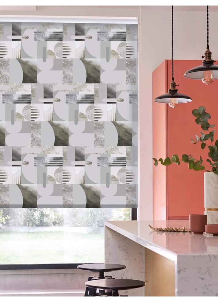 In stunning tones of grey, this contemporary geometric roller blind incorporates the watercolour trend with beautiful marble inlays adding stylish detailing to your window.