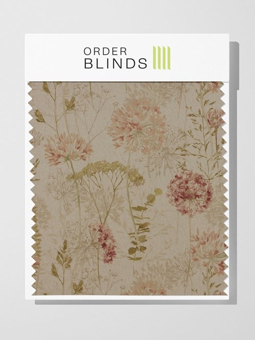 Transform your space with the Country Journal Rosa Roman Blind, featuring a delicate arrangement of flowers in blush pinks and pale greens. Against a muted pale pink linen-textured backdrop, this charming window treatment creates a soothing and timeless ambiance, adding a touch of natural beauty to your decor.