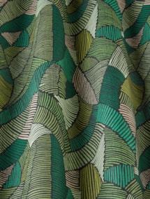 Transform your space with the Definity Jadeite Roman Blind, featuring a captivating heavy geometric pattern in soft pinks and intricate light and dark greens. This window treatment adds a touch of contemporary elegance and harmony, creating a captivating and stylish ambiance in any room.