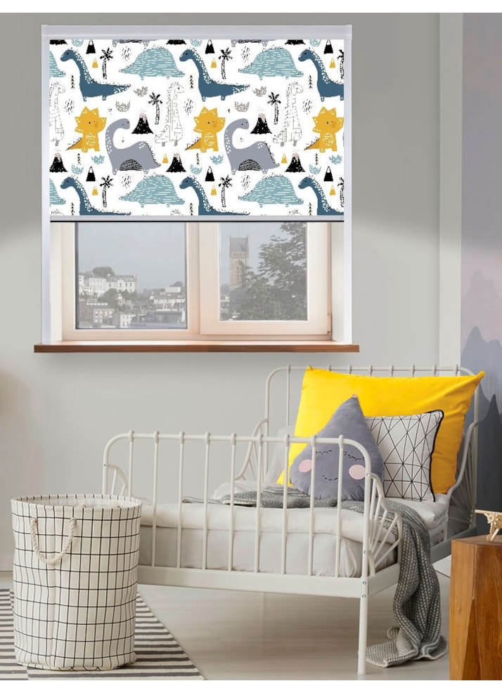 If you're looking to bring some Scandinavian style chic into your child's room while keeping it engaging and appealing to a young eye our Designer Dinosaur Print Total Blackout Blind is a perfect choice. The grown up palette of greys, muted blues and mustard yellow are kept whimsical and full of charm thanks to an array of friendly dinos..