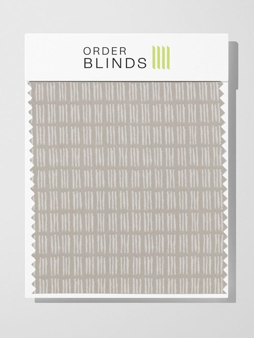 Elevate your decor with the Ditto Clay Roman Blind, a simple yet sophisticated addition to your space. Its muted beige background features adorning white lines in a symmetrical pattern, creating a clean and timeless ambiance by the window.