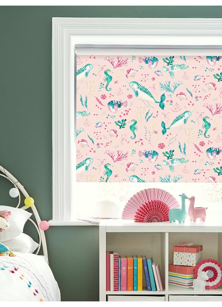 This beautiful Ocean inspired design is perfect for a child’s bedroom, connecting them with the fascinating marine life beneath the sea. You can spot enchanting Narwhals, turtles, seahorses and tropical fish hand painted in soft watercolours. In a stunning colour palette of pretty pastel shades, this roller blind is sure to add a sense of wonder to any space.