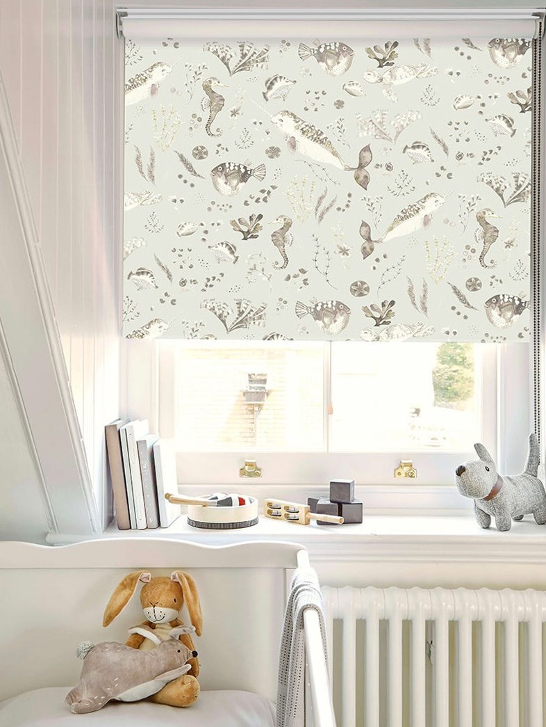 This enchanting, painterly design in gorgeous neutral tones is perfect for those looking for a quieter, more elegant design solution. In classic tones of taupes and warm greys, Narwhals, turtles, seahorse and stunning fish can be spotted amongst an array of beautiful sea plants. Add a whimsical twist to your child's space and spark their imagination with this gorgeous roller blind.