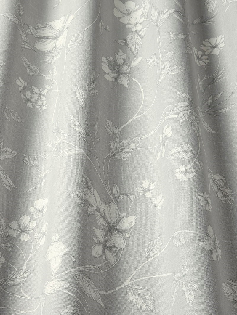 Transform your space with the Etched Vine Feather Roman Blind, featuring a simple yet elegant flowering vine pattern. The muted soft grey background with light beige accents creates a soothing and timeless ambiance, adding a touch of understated beauty to your decor.