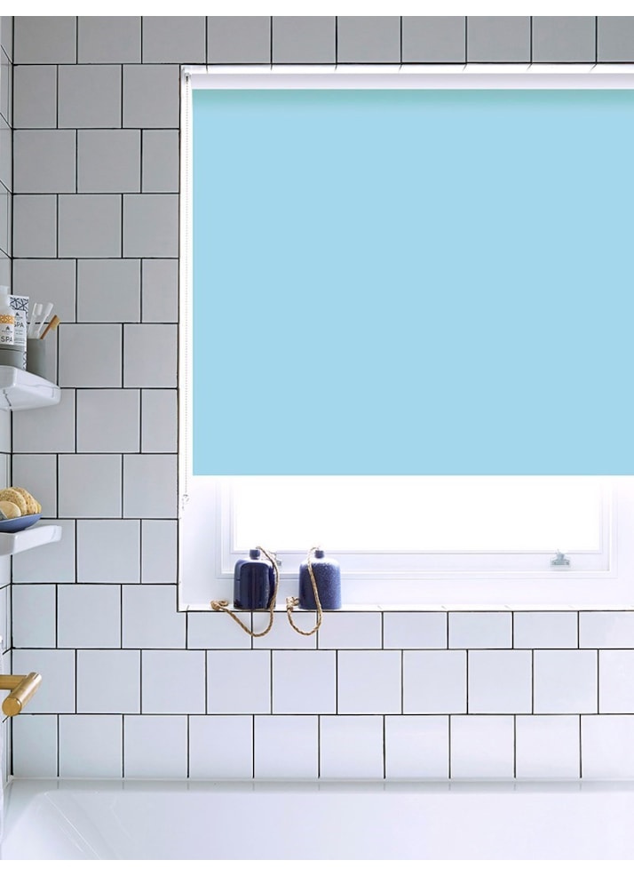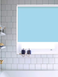 A classic pale blue for a serene feel, this pale and airy blind looks beautiful with both white and cream tiling.