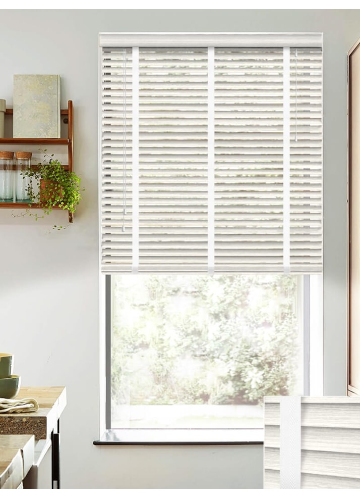 Glacier Grey Faux Wood Venetian Blind With White Tapes