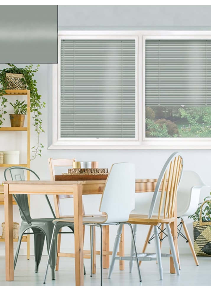 This Gloss Military Grey blind has an affinity for cooler tones with its hinting blue whilst the neutral quality of this colour is prepared to complement any scheme. It is particularly favourable to dark accents for a striking contrast as well as being quite a comfort amid other light base tones.