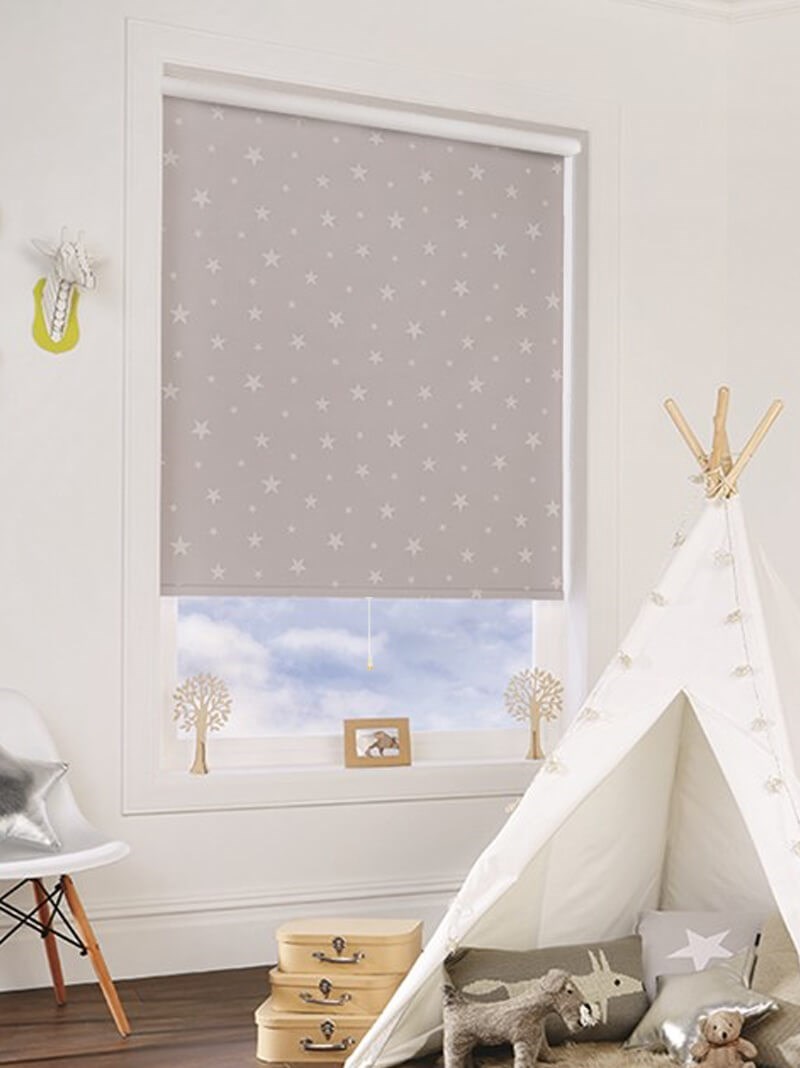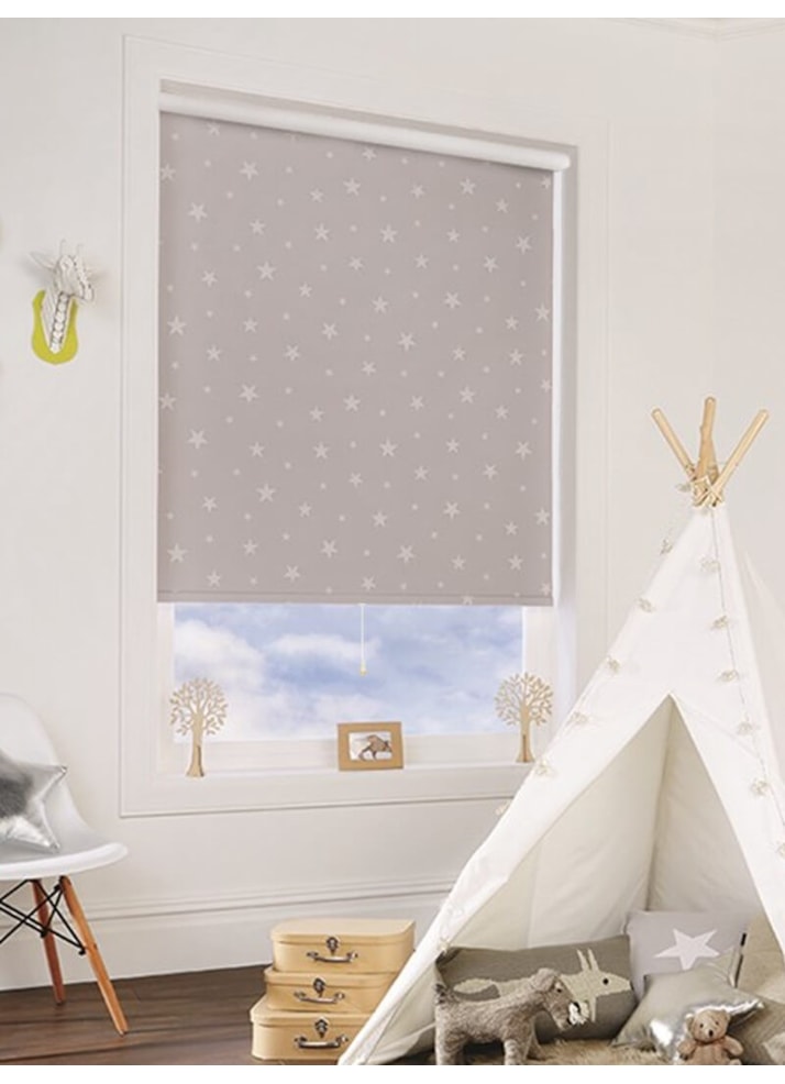 Add a touch of magic to your child's room with our Glow In The Dark Stars Blackout Cordless Roller Blind! Simply roll down the pale grey blind and allow it to charge up from the lights in the room, then when the lights go off for bedtime the stars emit a soft soothing glow to help your little one drift off to sleep. Not only nice to look at, the blackout fabric prevents any natural light from seeping in helping create the perfect atmosphere for sleep at any time of day.