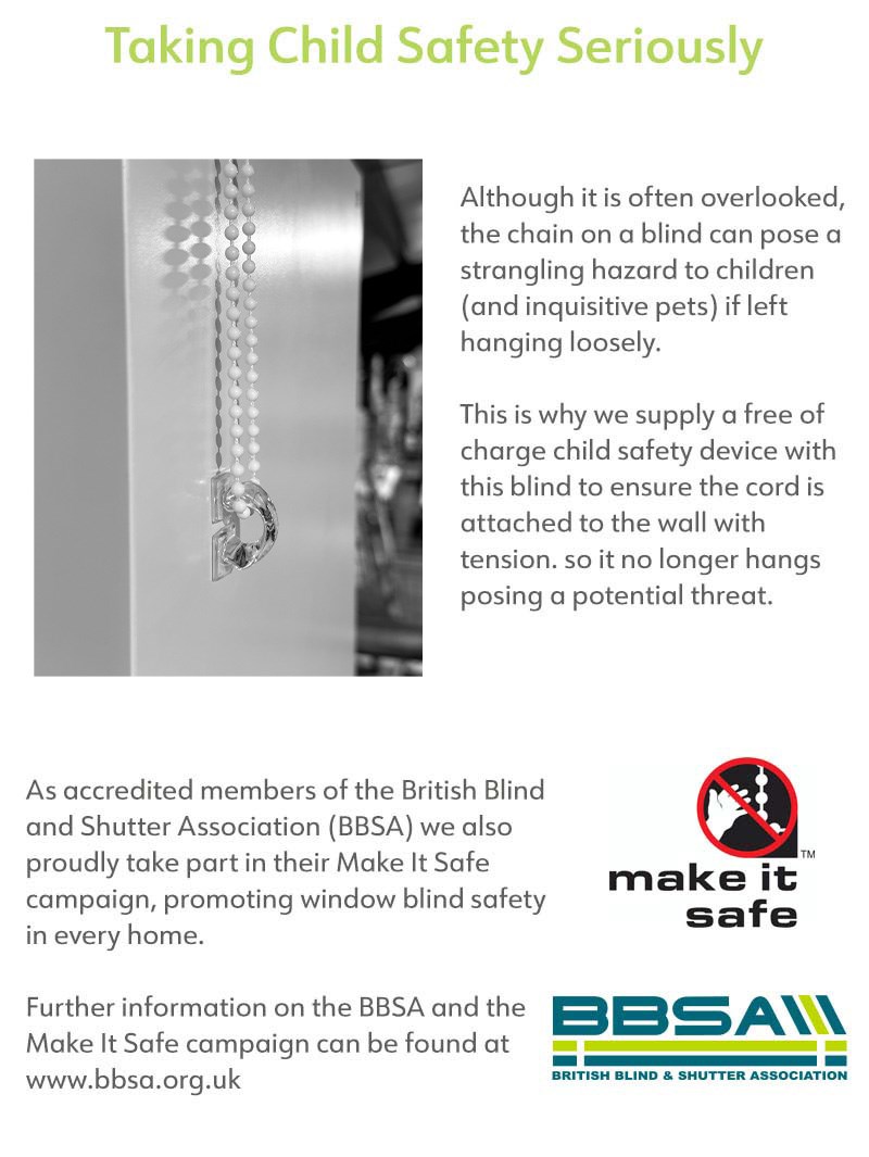 • Made using an aluminium head rail that is painted white. The cord, link chain and weights are also white.