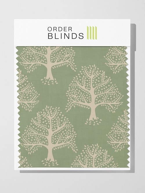 Elevate your decor with the Great Oak Lichen Roman Blind, showcasing a majestic oak tree pattern on a rich, dark forest green backdrop. Light brown oak trees create a captivating and timeless ambiance, adding a touch of natural beauty to your space.