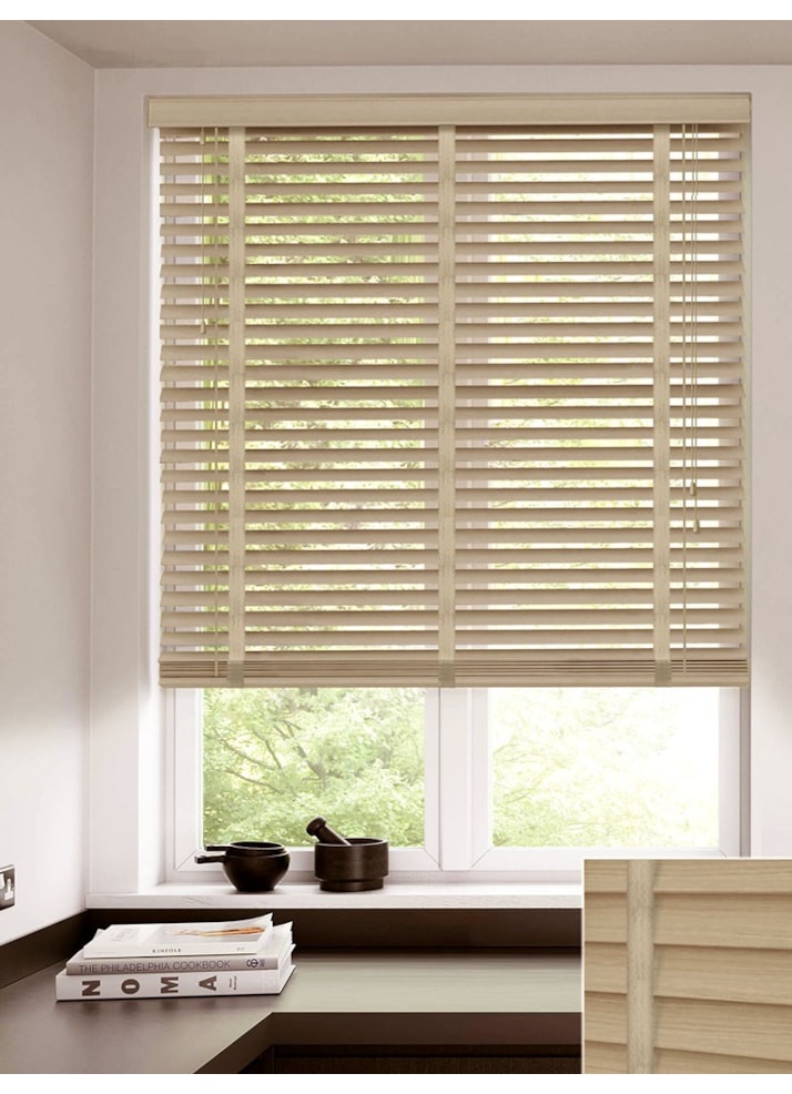Greige 50mm Faux Wood Venetian Blind With Tapes