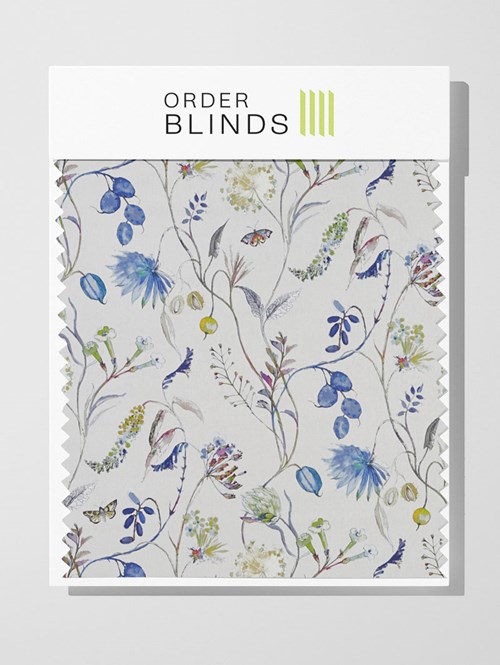 Enhance your decor with the 'Grove Saxon Blue' Roman Blind, featuring a watercolour-inspired pattern of flowering stems and delicate butterflies that adds a touch of natural elegance and whimsy to your living space. This window treatment seamlessly marries style and privacy, creating a soothing and inviting ambiance with its captivating floral and fauna design.