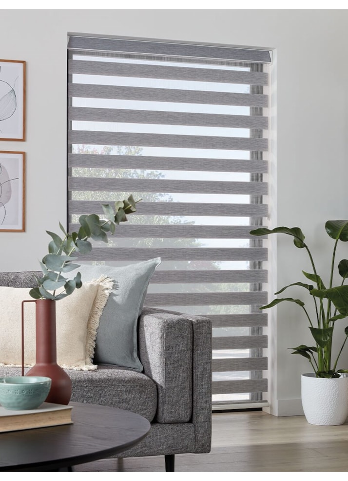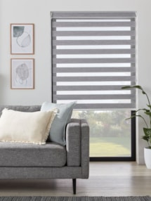 An attractive and innovative solution for many windows, our clever Day and Night blind system works using a looped piece of fabric so that when you raise or lower the blind you can make the alternating sheer and opaque stripes either align or disalign in varying amounts for amazing light control.