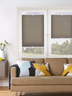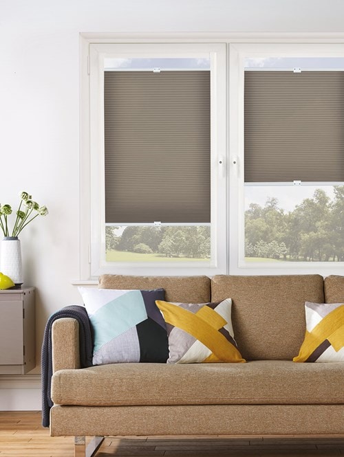 A dark, smoky warming neutral brown town designed to create a cosy atmosphere in any room. These blinds are expertly crafted to allow light to gently filter into your space whilst offering the perfect balance between privacy, style and embracing the beauty of daylight. Effortlessly designed to fit directly onto your UPVC frame via brackets that slide behind the rubber beading, they offer exceptional versatility, especially as the double handed system allows you maximum adjustability.