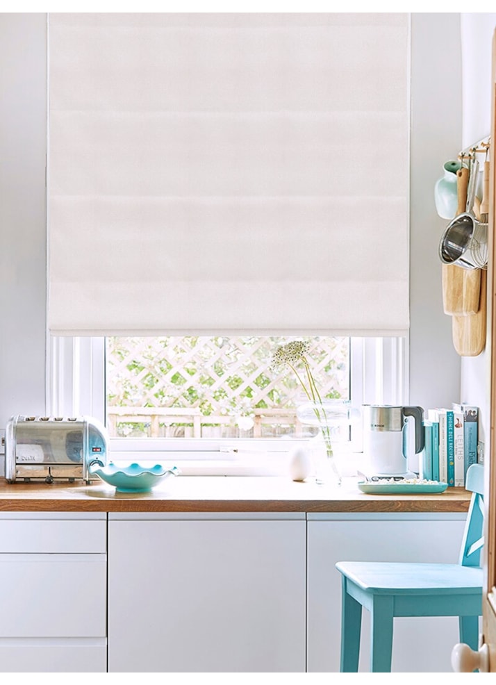 The versatility of our Sculpture white roman blind pairs with countless colour schemes, offering a light and elegant feature into your home. Incorporate vibrant colours alongside light coloured wooden furnishings into the decor scheme to truly show this colour off.