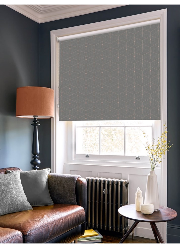 This sophisticated geometric print blind makes a smart, stylish window dressing for many rooms teaming a chic dark textured base with a classic linear repeat design in a lighter shade to provide contrast. Ideal for offices, professional spaces and smart living areas.