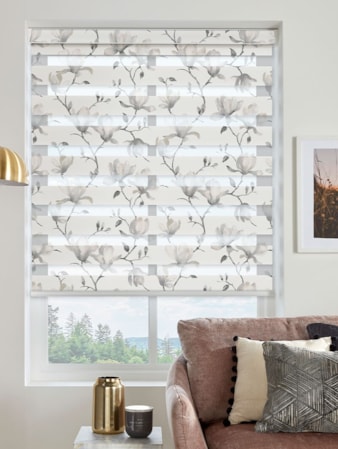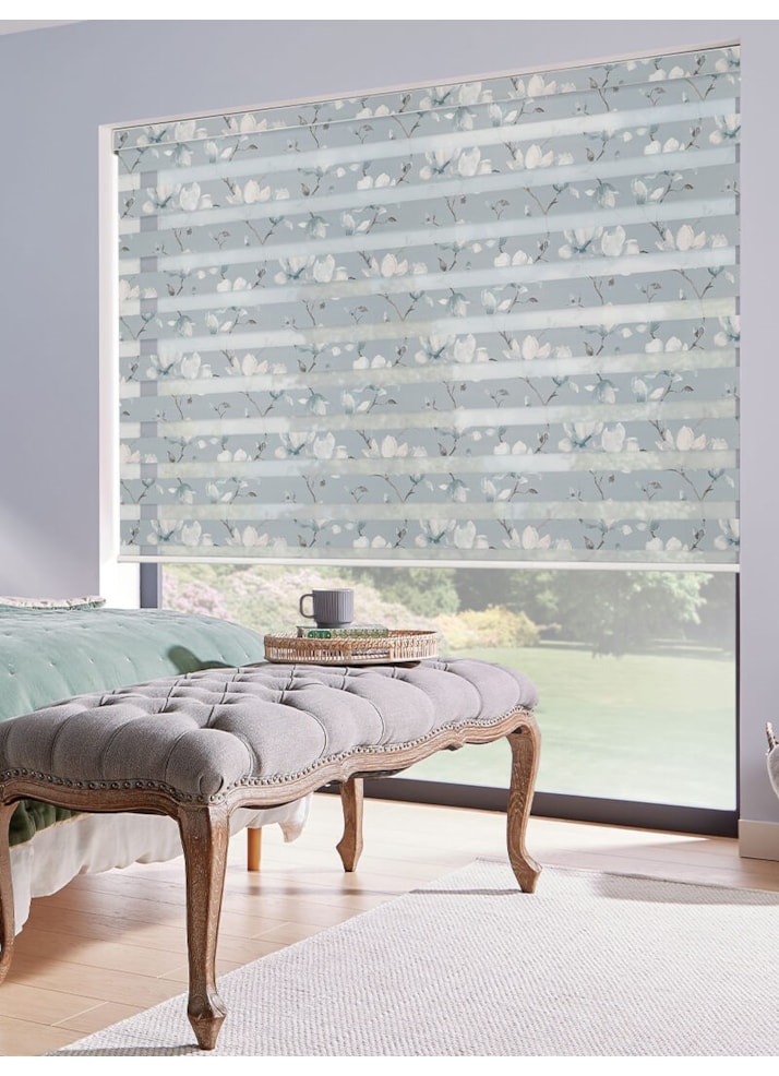 These beautiful floral day and night blinds are decorated with delicate, watercolour brush strokes which bring a freshness to your room, with decoration on the sheer panel to complete the picture when the blind is closed.